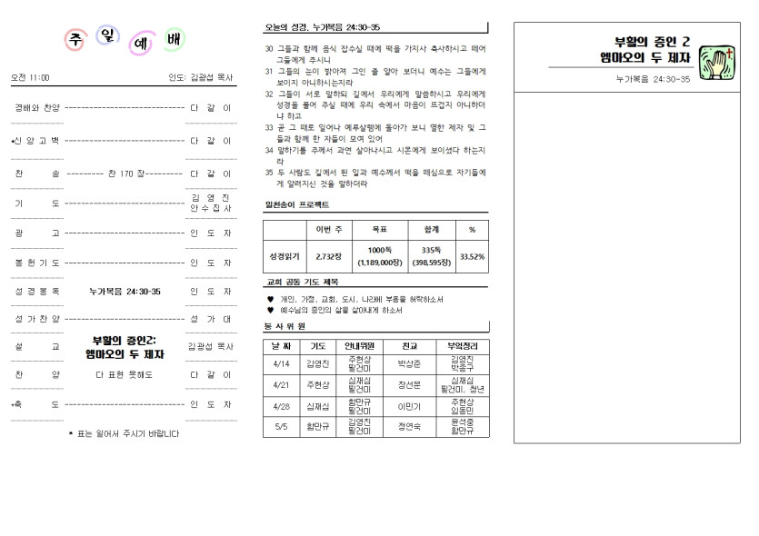 2024년 4월 14일 교회 주보