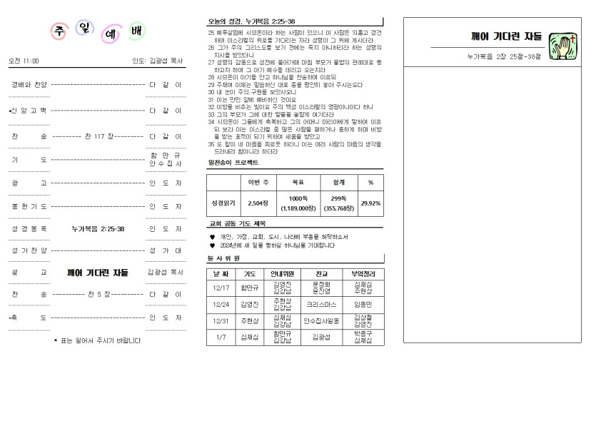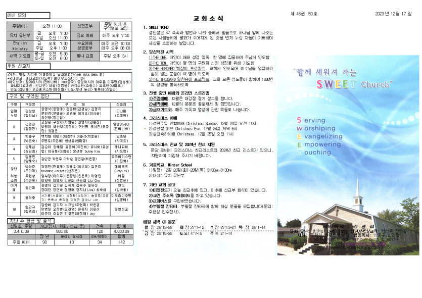December 17, 2023 . 샴버그침례교회 2023년 12월 17일 교회 주보