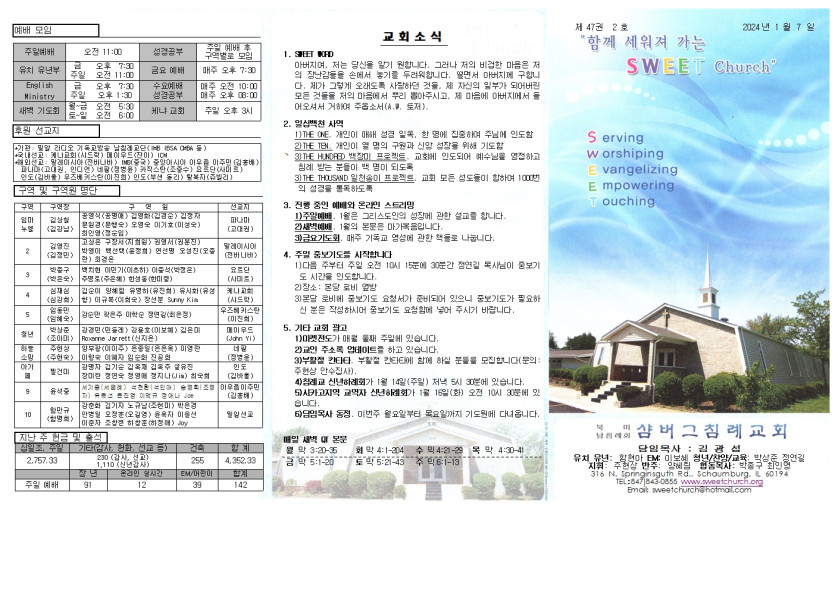 January 08, 2024 . 샴버그침례교회 2014년 1월 7일 교회 주보