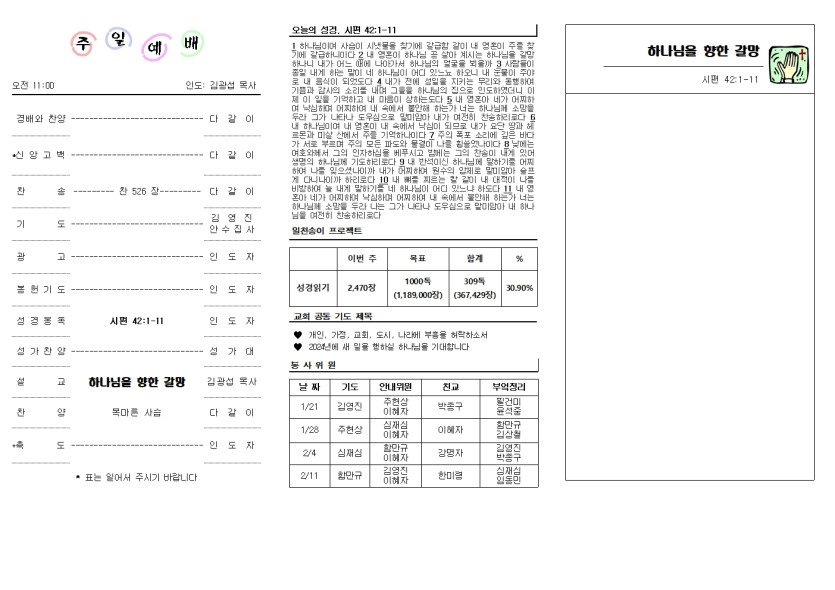 2024년 1월 21일 교회 주보