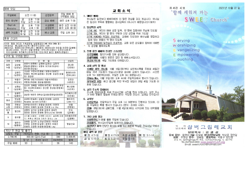 October 22, 2023 . 샴버그침례교회 2023년 10월 22일 교회 주보