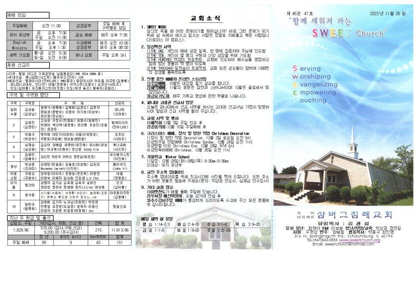 November 26, 2023 . 샴버그침례교회 2023년 11월 26일 교회 주보