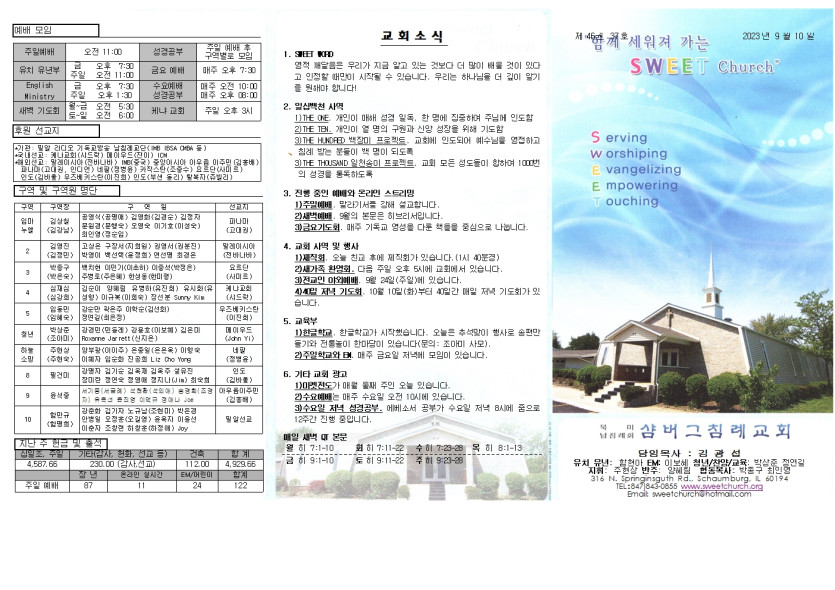 September 10, 2023 . 샴버그침례교회 2023년 9월 10일 주보
