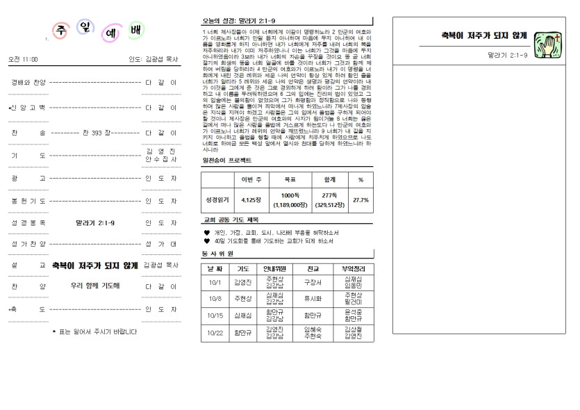 2023년 10월 1일 교회 주보