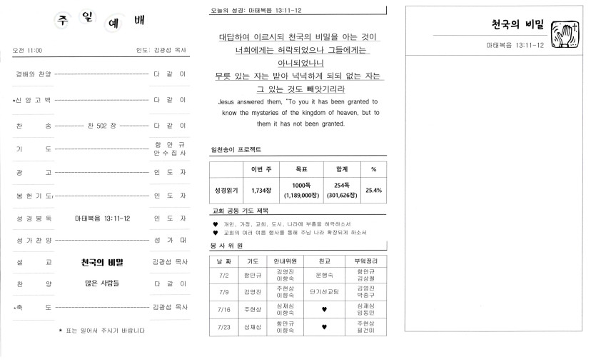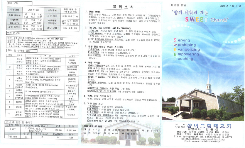July 02, 2023 . 샴버그침례교회 2023년 7월 2일 교회주보