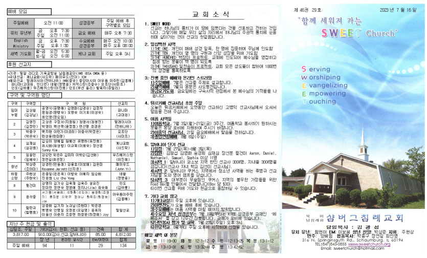 July 29, 2023 . 샴버그침례교회 2023년 7월 16일 교회주보
