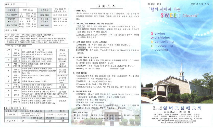 May 07, 2023 . 샴버그침례교회 2023년 5월 7일 교회주보