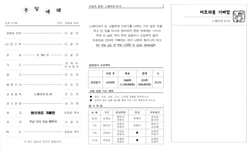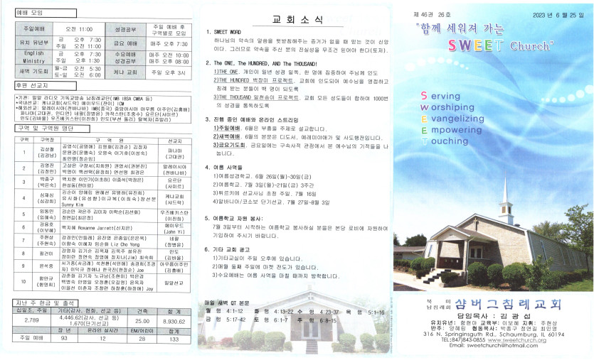 June 25, 2023 . 샴버그침례교회 2023년 6월 25일 주보