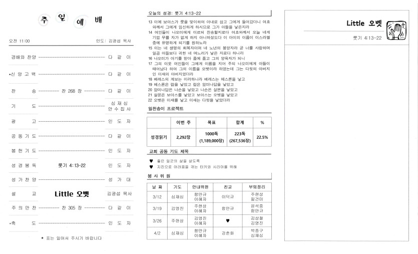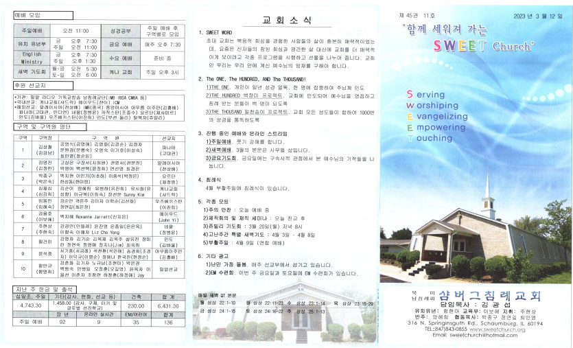 March 12, 2023 . 샴버그침례교회 2023년 3월 12일 교회 주보