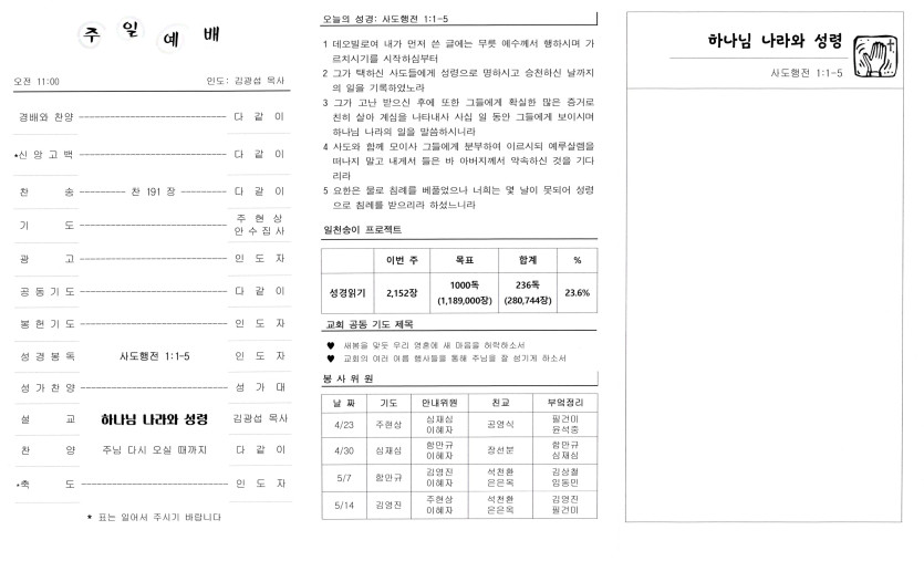 2023년 4월 23일 교회주보