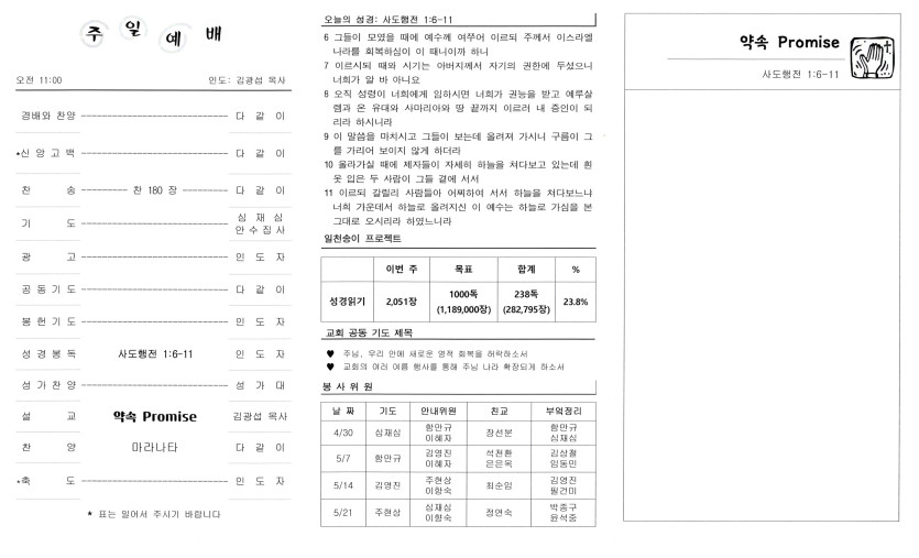 May 03, 2023 . 샴버그침례교회 2023년 4월 30일 교회주보