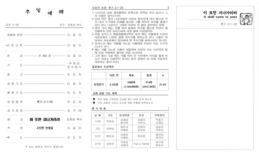 2023년 1월 29일 교회 주보 > 주보