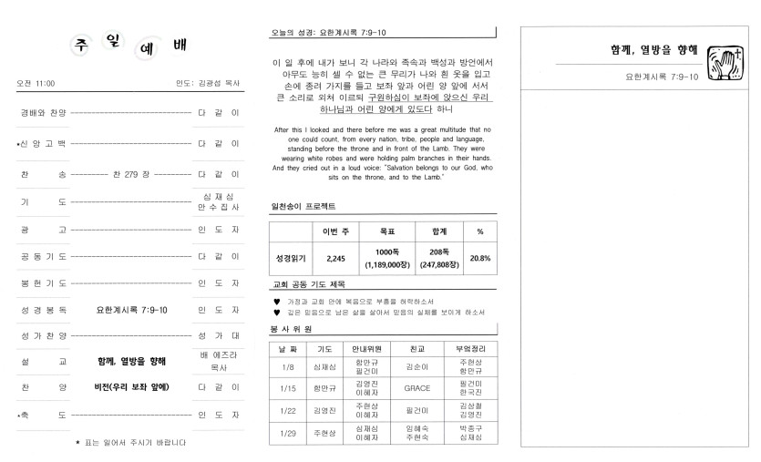 January 10, 2023 . 샴버그침례교회 2023년 1월 8일 교회주보