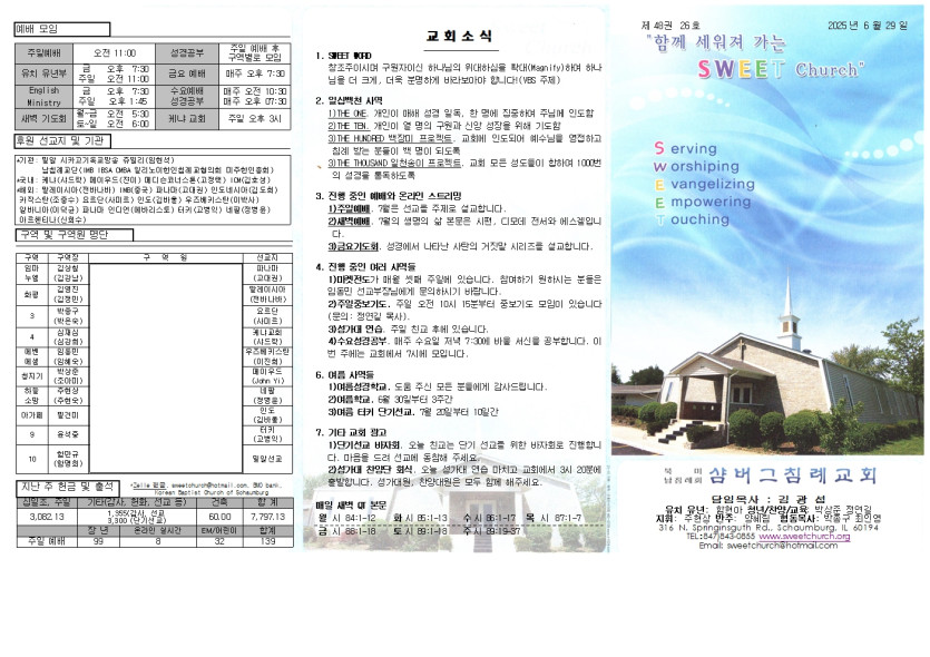 July 02, 2025 . 샴버그침례교회 2025년 6월 29일 교회 주보