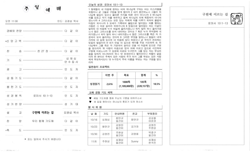 October 18, 2022 . 샴버그침례교회 2022년 10월 16일 주보