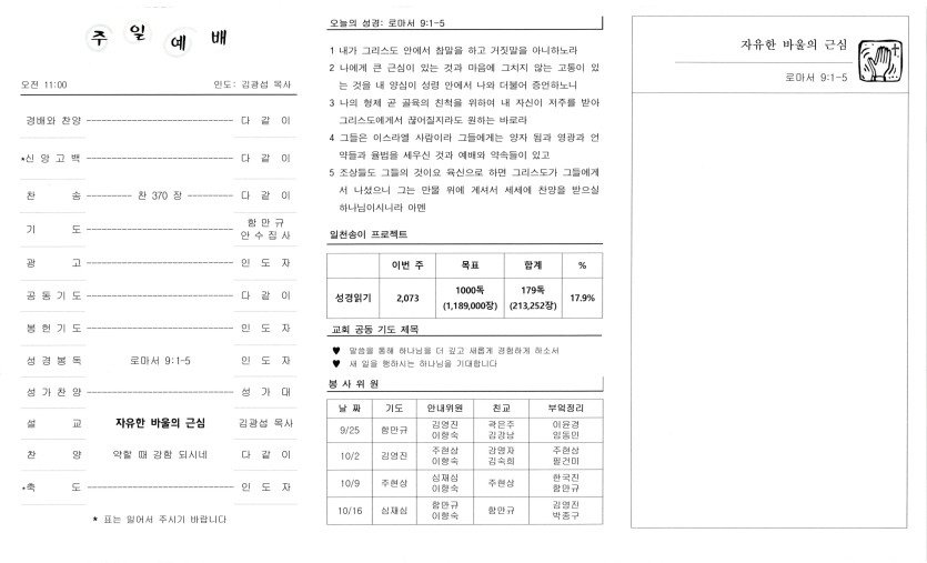 September 27, 2022 . 샴버그침례교회 2022년 9월 25일 주보