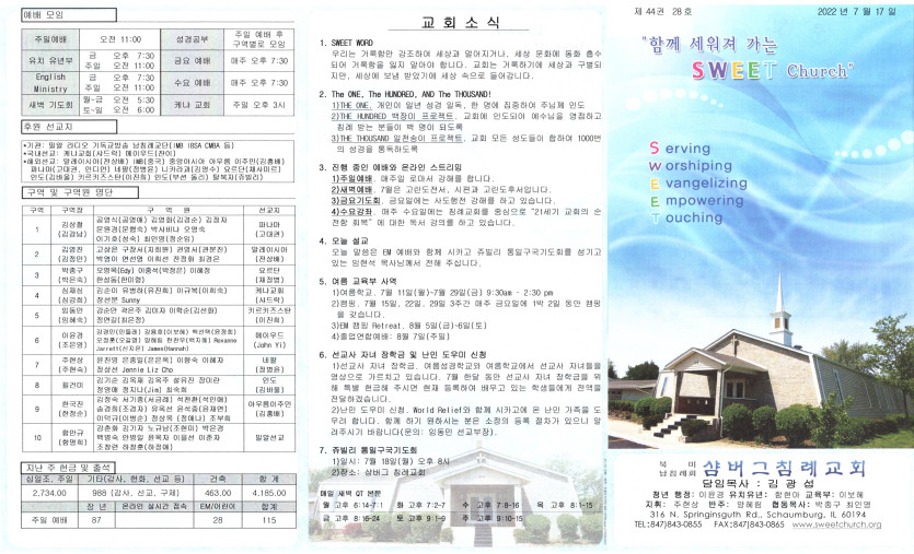 July 24, 2022 . 샴버그침례교회 2022년 7월 17일 주보