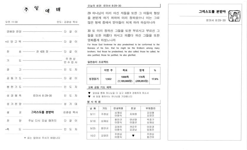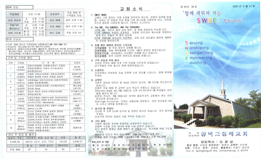 September 11, 2022 . 샴버그침례교회 2022년 9월 11일 주보