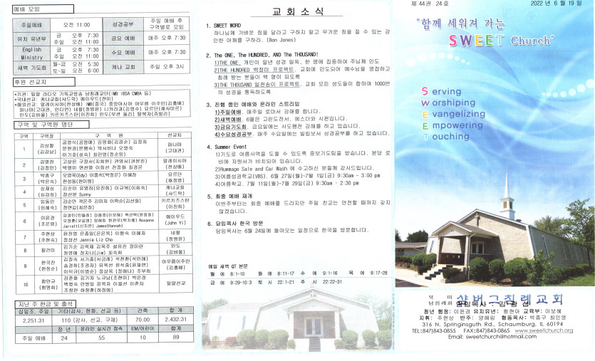 July 15, 2022 . 샴버그침례교회 2022년 6월 19일 주보