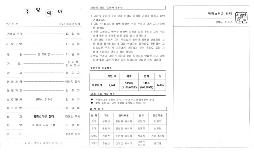 May 01, 2022 . 샴버그침례교회 2022년 5월 1일 주보