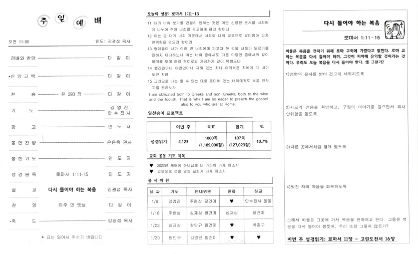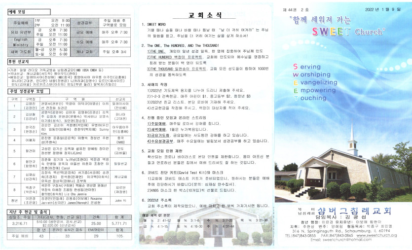 January 13, 2022 . 샴버그침례교회 2022년 1월 9일 주보