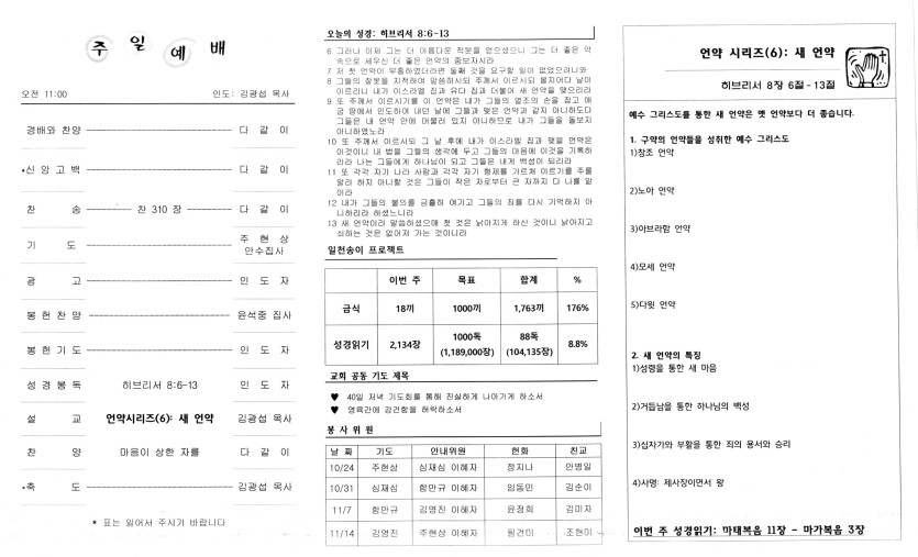 October 27, 2021 . 샴버그침례교회 2021년 10월 24일 주보
