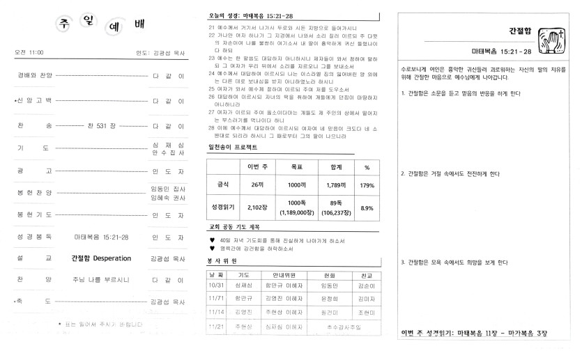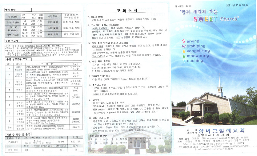 November 07, 2021 . 샴버그침례교회 2021년 10월 31일 주보