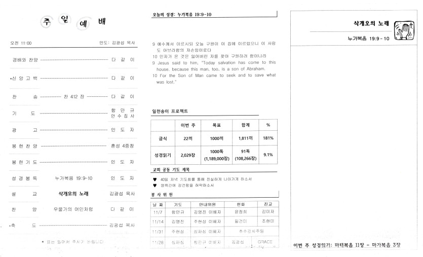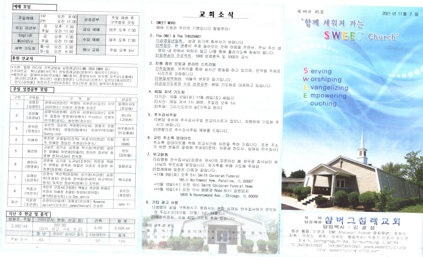 November 30, 2021 . 샴버그침례교회 2021년 11월 7일 주보