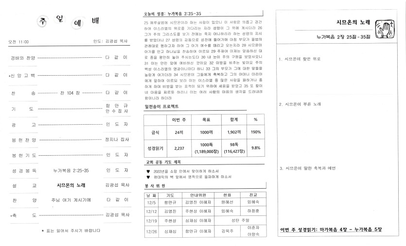 December 09, 2021 . 샴버그침례교회 2021년 12월 5일 주보