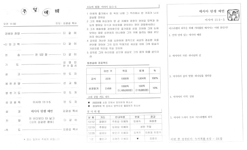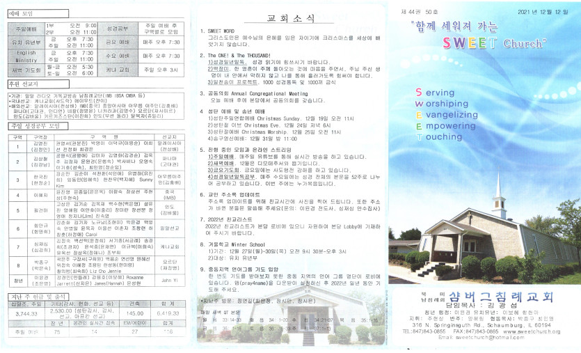 December 16, 2021 . 샴버그침례교회 2021년 12월 12일 주보