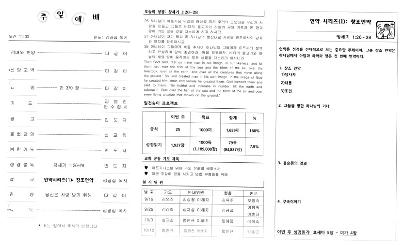September 21, 2021 . 샴버그침례교회 2021년 9월 19일 주보