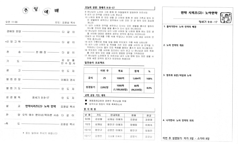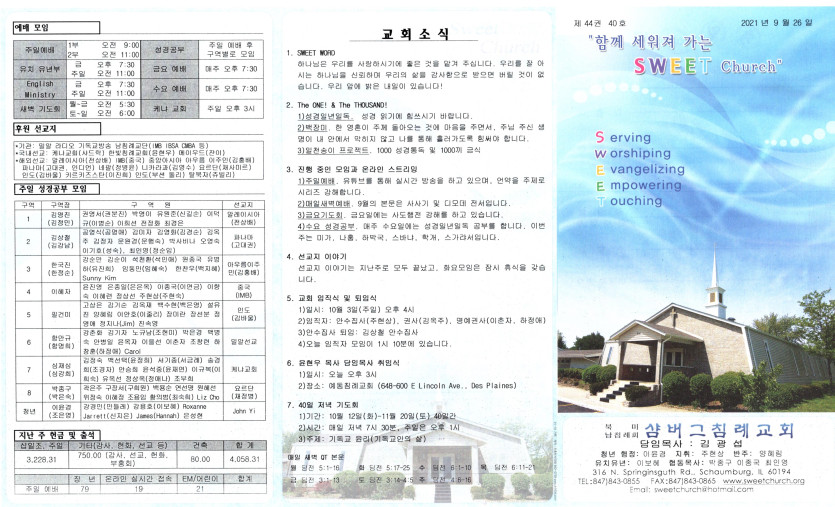 September 28, 2021 . 샴버그침례교회 2021년 9월 26일 주보