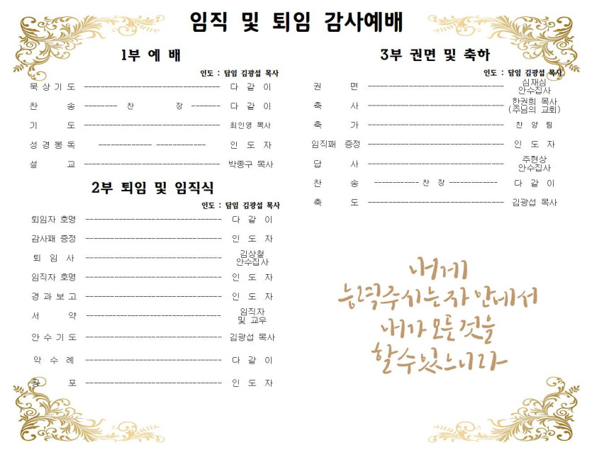 샴버그침례교회 퇴임 및 임직 예배 주보