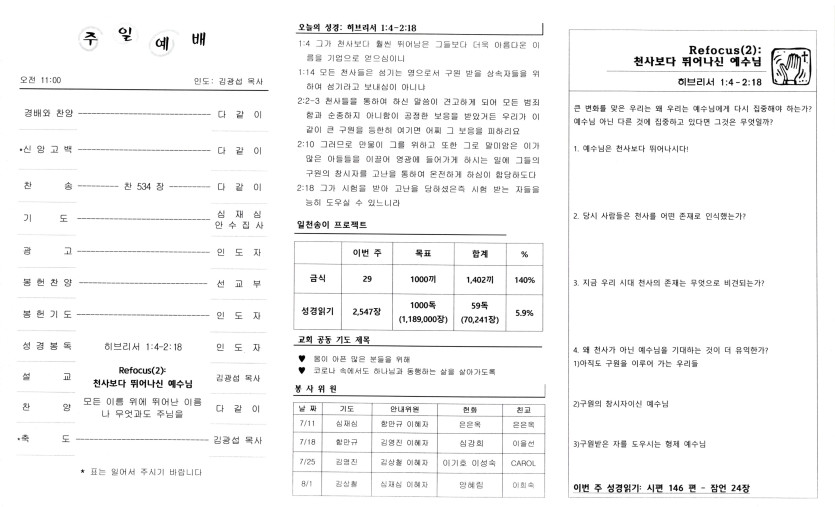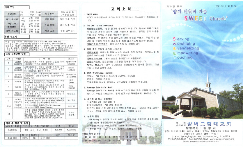 July 14, 2021 . 샴버그침례교회 2021년 7월 11일 주보
