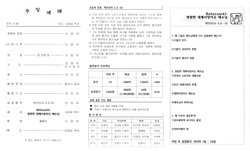 August 04, 2021 . 샴버그침례교회 2021년 7월 25일 주보