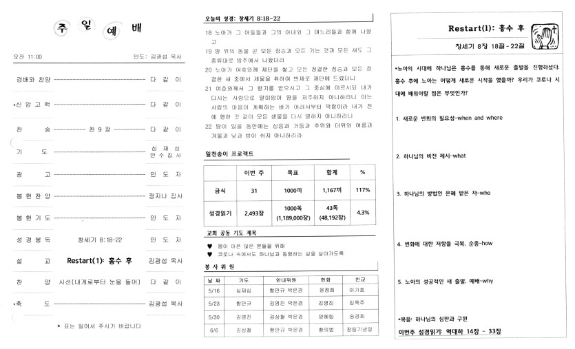 May 18, 2021 . 샴버그침례교회 2021년 5월 16일 주보