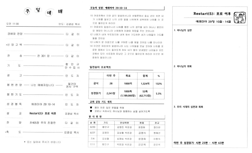 June 22, 2021 . 샴버그침례교회 2021년 6월 20일 주보