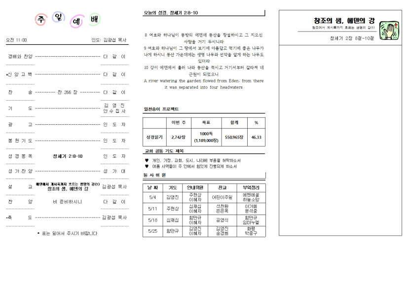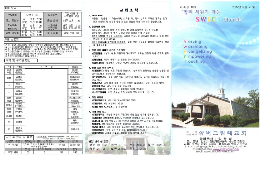 May 04, 2025 . 샴버그침례교회 2025년 5월 4일 교회 주보