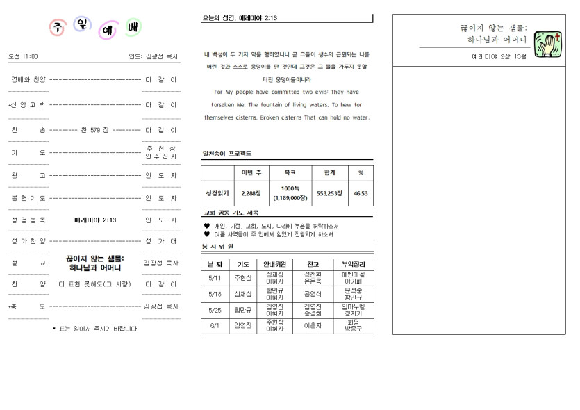 2025년 5월 11일 교회 주보