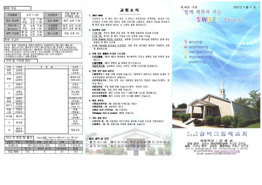May 11, 2025 . 샴버그침례교회 2025년 5월 11일 교회 주보