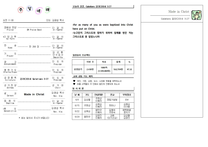 June 08, 2025 . 샴버그침례교회 2025년 6월 8일 교회 주보