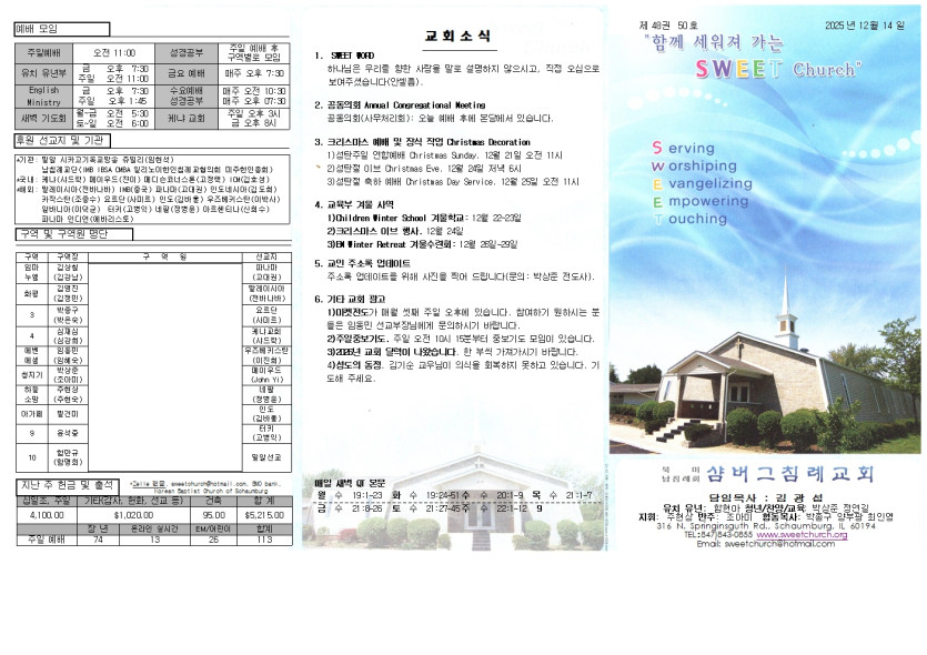 December 14, 2025 . 샴버그침례교회 2025년 12월 14일 교회 주보