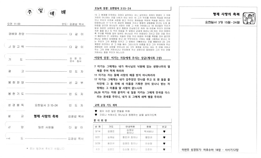 April 16, 2021 . 샴버그침례교회 2021년 3월 14일 주보