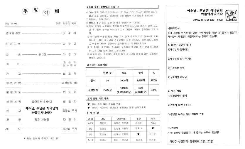 April 27, 2021 . 샴버그침례교회 2021년 4월 25일 주보