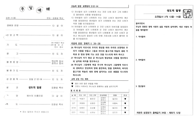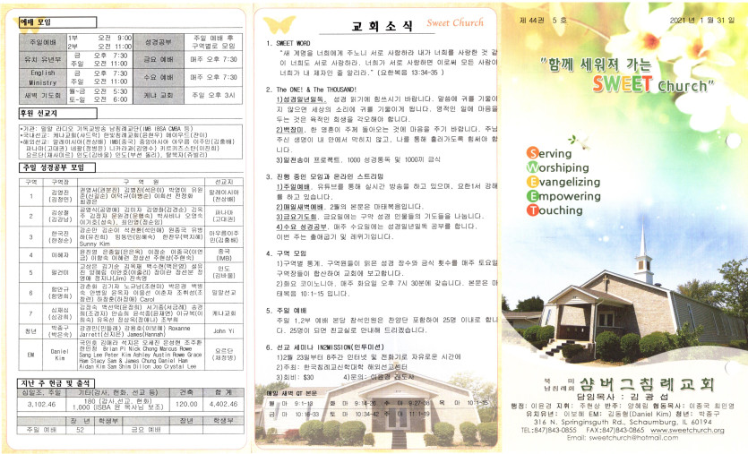 April 16, 2021 . 샴버그침례교회 2021년 1월 31일 주보