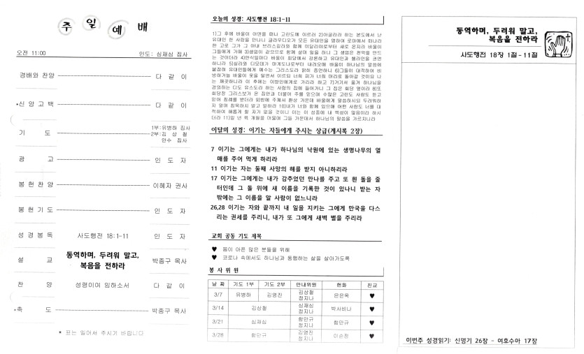 April 16, 2021 . 샴버그침례교회 2021년 3월 7일 주보