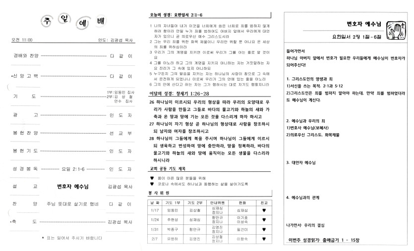 April 16, 2021 . 샴버그침례교회 2021년 1월 17일 주보