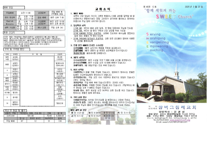 March 25, 2025 . 샴버그침례교회 2025년 3월 23일 교회주보