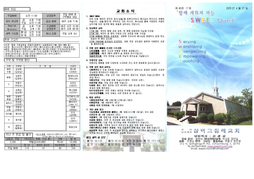 April 27, 2025 . 샴버그침례교회 2025년 4월 27일 교회 주보