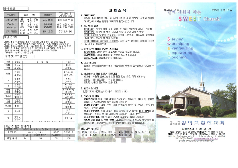 February 18, 2025 . 샴버그침례교회 2025년 2월 16일 교회 주보